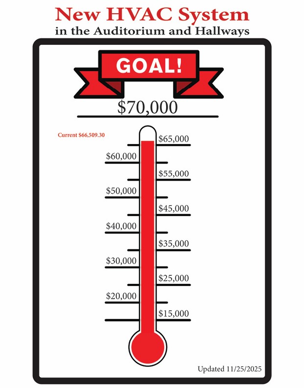 We are in the process of having the 50+ year old heating and air conditioning system in the auditorium replaced. If you would like to make a donation toward this effort, you may do so in several different ways. All of the payment methods that are used for regular contributions may be used for these donations as well.